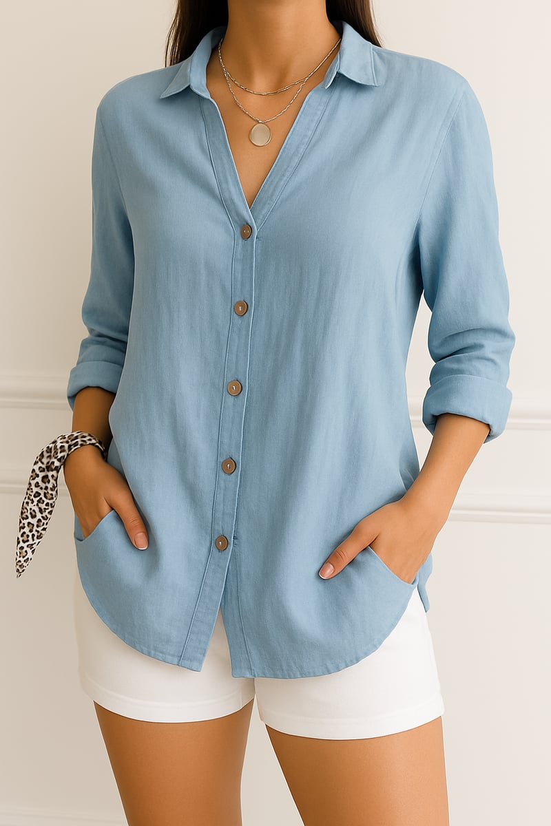 Women's Cotton and Linen Casual Single-Breasted Pleated Lapel Shirt